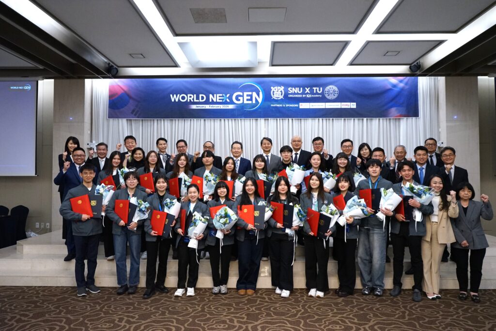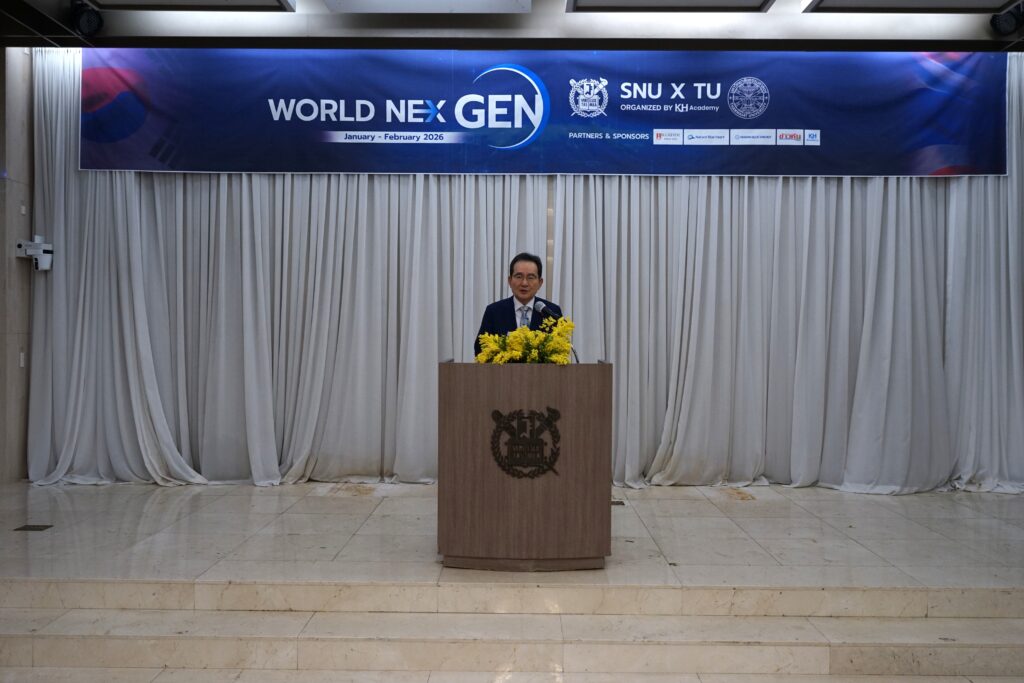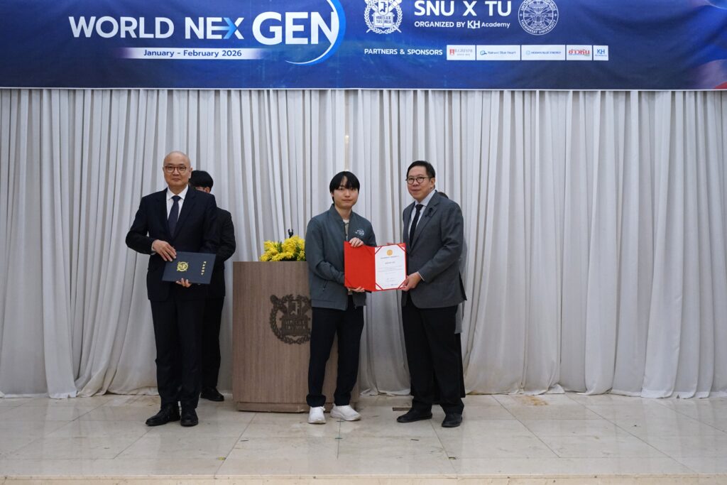 [กรุงโซล, สาธารณรัฐเกาหลี] – ปิดฉากลงอย่างสมบูรณ์แบบและสง่างามสำหรับโครงการ WorldNexGen 2026 โครงการความร่วมมือทางวิชาการระดับนานาชาติ ระหว่าง มหาวิทยาลัยแห่งชาติโซล (Seoul National University หรือ SNU) สาธารณรัฐเกาหลี , มหาวิทยาลัยธรรมศาสตร์ และสถาบัน KH Academy โดยมีวัตถุประสงค์เพื่อบ่มเพาะผู้นำรุ่นใหม่ผ่านการเรียนรู้เชิงลึกด้านนโยบายเศรษฐกิจ การเงิน อุตสาหกรรม การค้าการลงทุน ตลอดจนสังคมและวัฒนธรรมในภูมิภาคอาเซียน ซึ่งถือเป็นกลไกสำคัญในการขับเคลื่อนประเทศ โดยได้จัดพิธีปิดโครงการฯ อย่างเป็นทางการ พร้อมมอบประกาศนียบัตรแก่นักศึกษาจำนวน 20 คน เมื่อวันที่ 5 กุมภาพันธ์ 2569 ณ Convention Hall (SNU Faculty Club) มหาวิทยาลัยแห่งชาติโซล