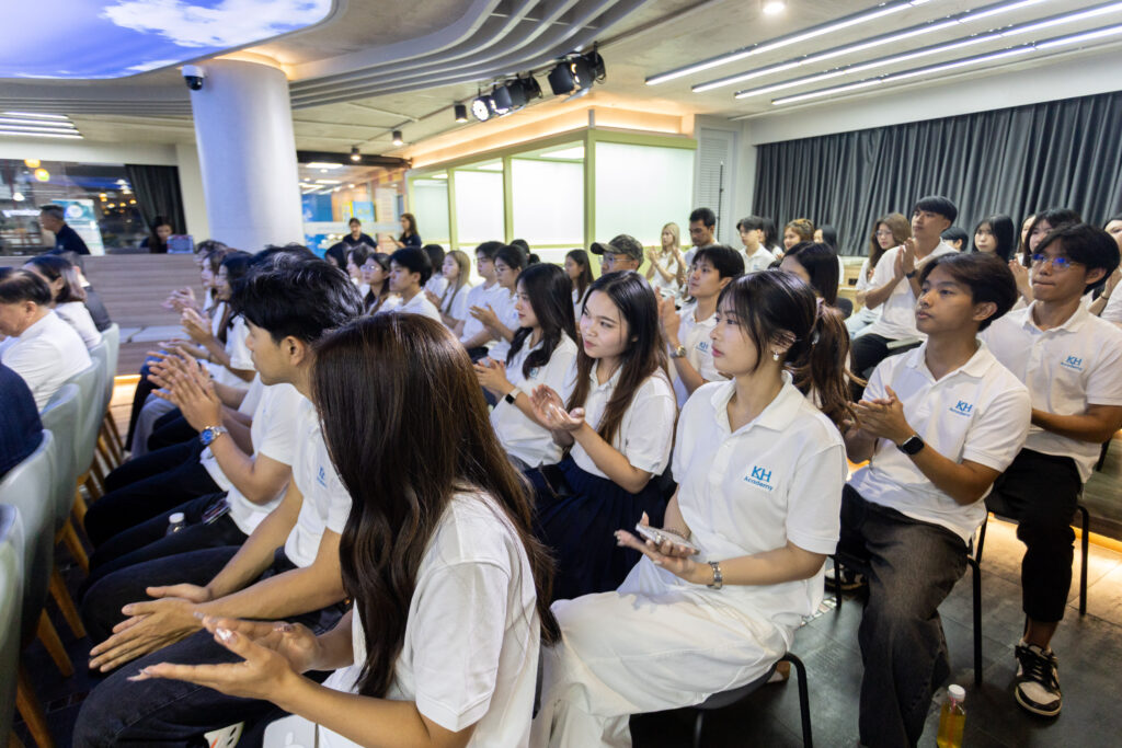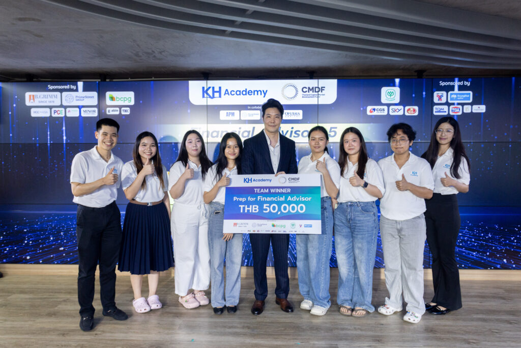 กรุงเทพมหานคร (12 กุมภาพันธ์ 2569) – สถาบัน KH Academy จัดพิธีปิดหลักสูตร Prep for Financial Advisor เตรียมความพร้อมด้านวิชาชีพที่ปรึกษาทางการเงิน รุ่นที่ 5 พร้อมมอบทุนการศึกษา 50,000 บาท แก่ทีมผู้ชนะกิจกรรมเวิร์กชอปนำเสนอแผนการลงทุน และมอบประกาศนียบัตรสำหรับผู้ผ่านการอบรมเกือบ 60 ชีวิต ฟากไพร์มสตรีท และ APM ร่วมเป็นสักขีพยานความสำเร็จก้าวแรกสู่เส้นทางวิชาวิชาชีพการเงินการลงทุนของนิสิตนักศึกษาอย่างคับคั่ง