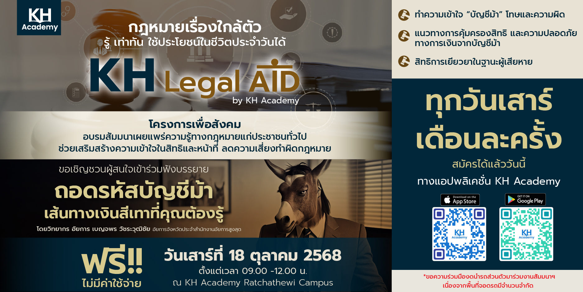 KH Academy continues its commitment to social responsibility, having launched ‘KH Legal Aid’—an initiative offering free public seminars designed to deepen legal literacy and promote a safer society. The program serves as an extension of Kaohoon Turakij’s ongoing efforts to support and elevate the standards of Thai society. This November, KH Legal Aid will focus […]