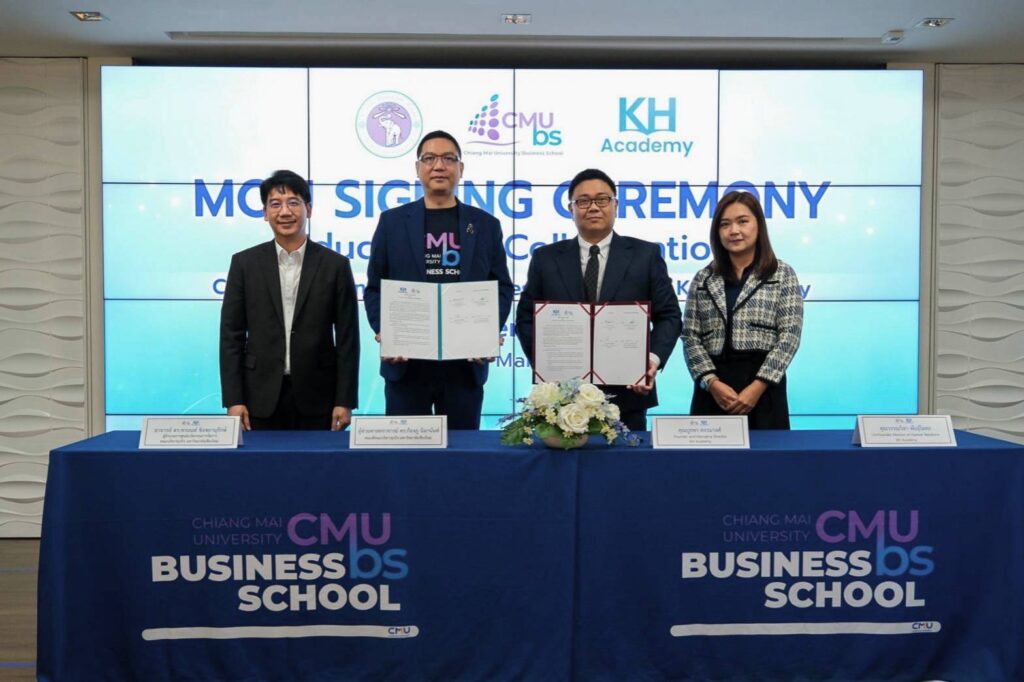 วันที่ 24 พฤศจิกายน 2568 นายบูรพา สงวนวงศ์ Founder and Managing Director สถาบันการเรียนรู้ KH Academy และ ดร.ก้องภู นิมานันท์ คณบดีคณะบริหารธุรกิจ มหาวิทยาลัยเชียงใหม่ (CMUBS) ลงนามบันทึกข้อตกลงความร่วมมือทางวิชาการ (MOU) เพื่อบูรณาการร่วมกันในการพัฒนาหลักสูตรการเรียนการสอนด้านการบริหารธุรกิจ การเงิน การลงทุน พร้อมแลกเปลี่ยนประสบการณ์ผ่านการฝึกงานเชิงปฏิบัติจริงในองค์กรภาคธุรกิจ อันเป็นการเพิ่มพูนความรู้ ทักษะนอกตำราเรียนอย่างรอบด้าน ช่วยยกระดับคุณภาพและศักยภาพนักศึกษาให้สอดคล้องกับการพัฒนาเศรษฐกิจและสังคมของประเทศอย่างยั่งยืน โดยมีนางวรรณวิสา พันธุ์โอสถ Co-Founder Director of Partner Relations สถาบัน KH Academy และอาจารย์ ดร.ชานนท์ ชิงชยานุรักษ์ ผู้อำนวยการศูนย์นวัตกรรมการจัดการ CMUBS เป็นพยานลงนามทั้งสองฝ่าย โอกาสนี้ ยังได้รับเกียรติจาก นายชาญชัย สงวนวงศ์ ผู้อำนวยการ เครือหนังสือพิมพ์ข่าวหุ้นธุรกิจ และนายเฉลิมศักดิ์ อุทกสินธุ์ อดีตแรงงานจังหวัดเชียงใหม่ ในฐานะศิษย์เก่า คณะรัฐศาสตร์และรัฐประศาสนศาสตร์ มหาวิทยาลัยเชียงใหม่ รุ่นที่ 7 ร่วมเป็นสักขีพยาน ณ ห้องประชุม 3 อาคาร 1 คณะบริหารธุรกิจ มหาวิทยาลัยเชียงใหม่