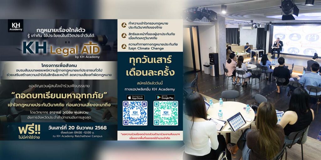 KH Academy จัดอบรมสัมมนา “กฎหมายประกันวินาศภัย” ชวนปชช.ถอดบทเรียนมหาอุทกภัย เตรียมพร้อมรับมือความเสี่ยง! ส. 20 ธ.ค. นี้