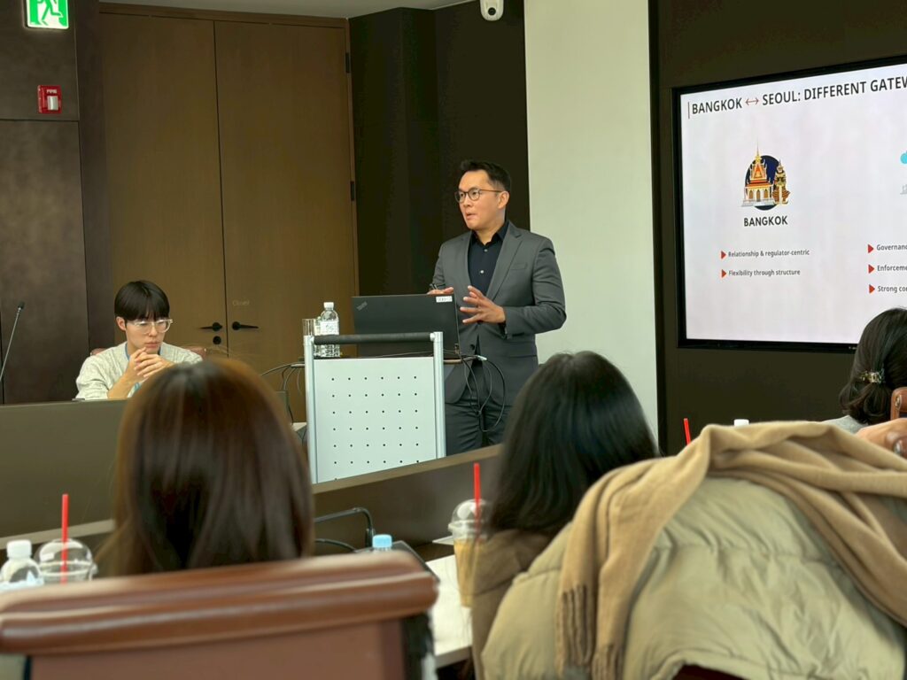 ต่อด้วย คุณกุดั่น สุขุมานนท์ ผู้ก่อตั้งและทนายความหุ้นส่วน บริษัท กุดั่น แอนด์ พาร์ทเนอร์ส จำกัด บรรยายในหัวข้อ “The Architect of the Gateway: Navigating the Legal Landscape from Bangkok to Seoul” สะท้อนบทบาทนักกฎหมายในการเชื่อมโยงโอกาสทางธุรกิจระหว่างประเทศไทยและเกาหลีใต้